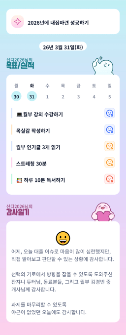 [고민말고행동] 목실감 누적 210일, 연속 171일 진행중