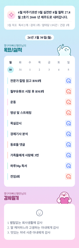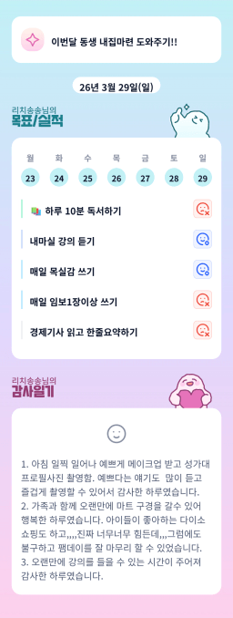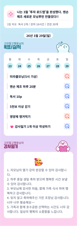 [리치송송] 목실감 누적 60일, 연속 27일 진행중 (3/29)