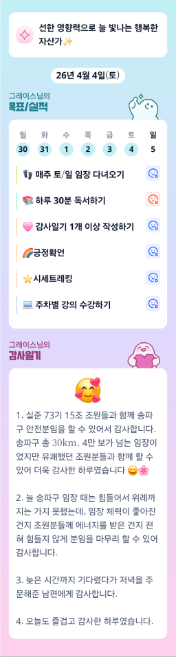 [그레이스] 목실감 누적 243일, 연속 214일 진행중