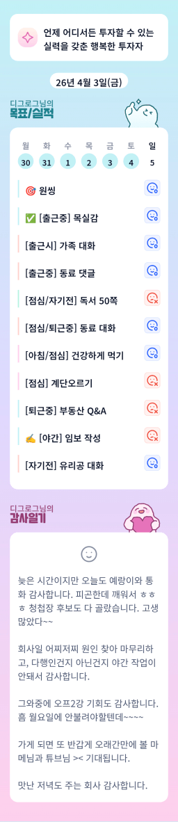 [디그로그] 4/3 목실감 누적 280일, 연속 260일 진행중