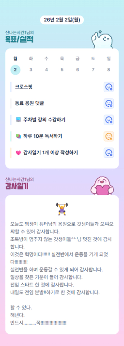 [실전34기 2월은 7ㅏㅅ생 대신 멤생 살자😎 여븨] 26.02.02 월 목실감