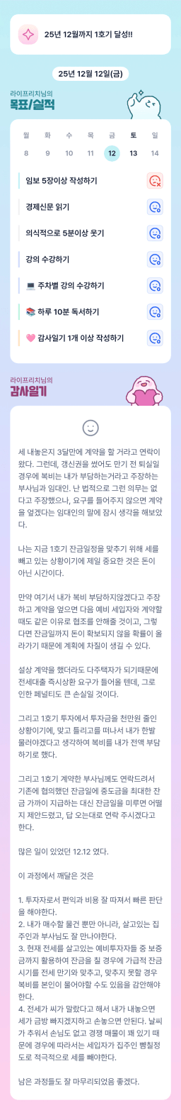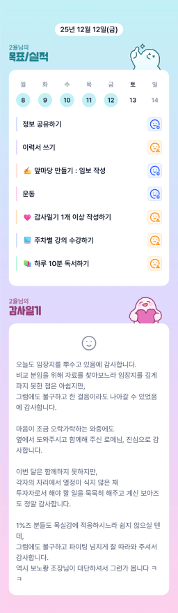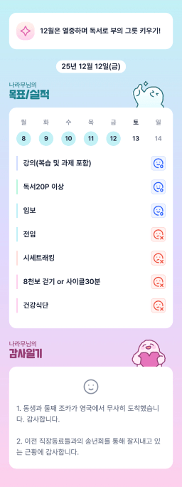 [러버블리v] 25.12.13 목표, 12.12 감사일기 + 칭반