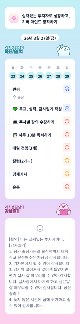 [열중 49기 2번달 투자&독서와 4랑에 빠졌조 리치샘킴] 목실감(3.27~3.29)