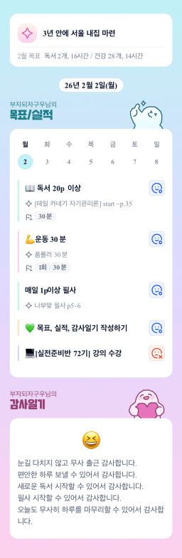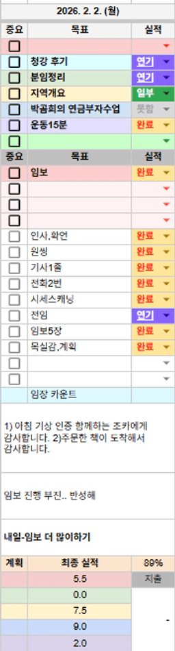 02/02 목표,실적,감사일기,시간가계부 [김실력]