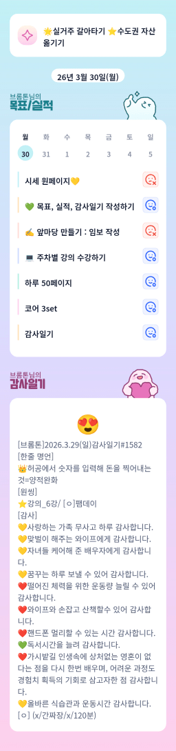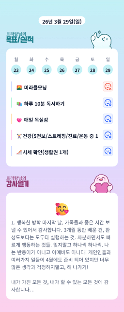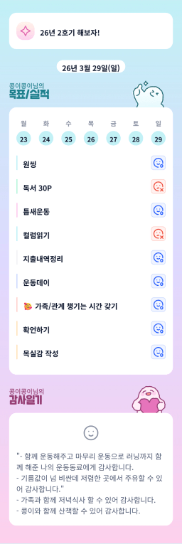 [콩이콩이] 목실감 누적 236일, 연속 236일 진행중(260329)