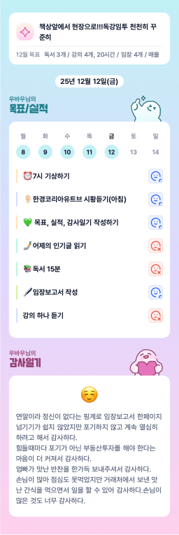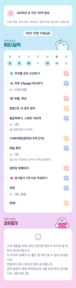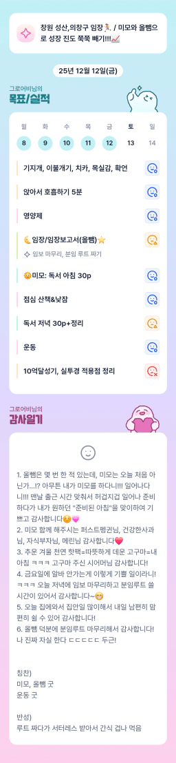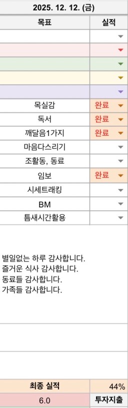 25년 12/13 목표,실적,감사일기,시간가계부[헤라클래스]