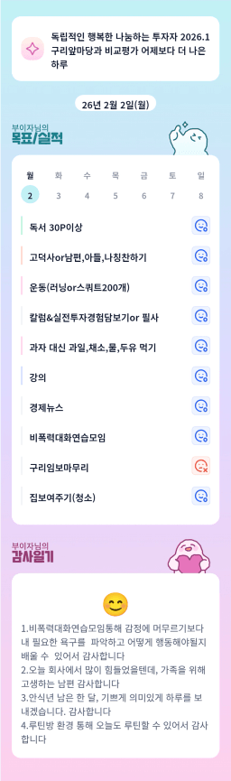 [오래가는 꾸준한 투자자 루피님]26.2.2. 목실감! 목표글은 담날 수정예정..ㅎㅎ.