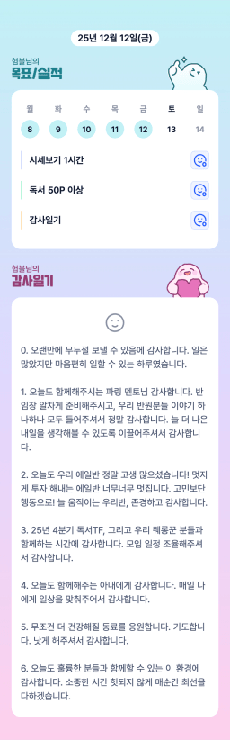 [에이스1반/독서TF 험블] 12월 12일(금) 감사일기