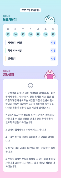 [에이스2반/독서TF 험블] 3월 29일(일) 감사일기