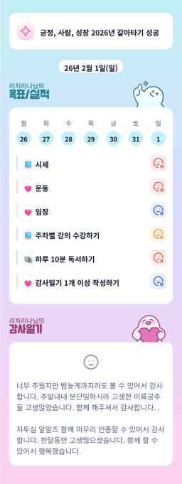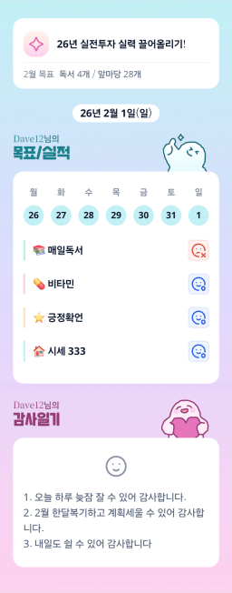 [실전34기 24시간 12개월 꾸준히 나알이 나아가조💙 녹차크림] 20260201~20260202 목실감