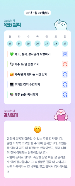 [Genie] 목실감 누적 164일, 연속 120일 진행중, 3/29