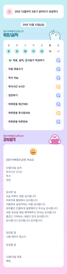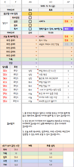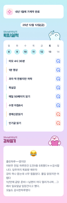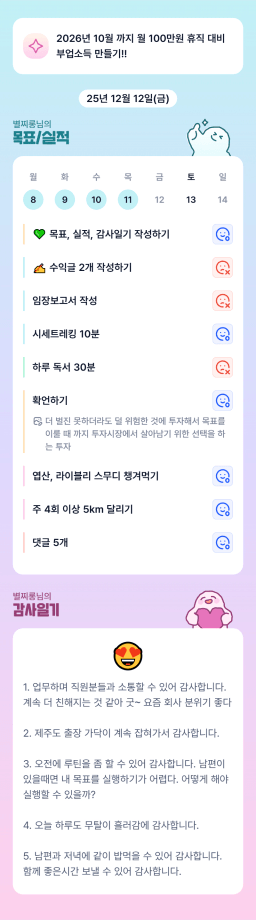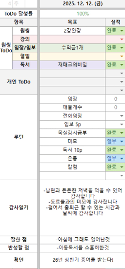[별찌롱] 12/12 실적, 감사일기, 시간가계부 12/13 목표