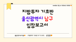 울산광역시 남구 임장보고서 1주차_입지분석&생활권 정리 [지투기 세(3)상에~1등 투자자 다모였다! 20조 대박나조! 성장함🧡]