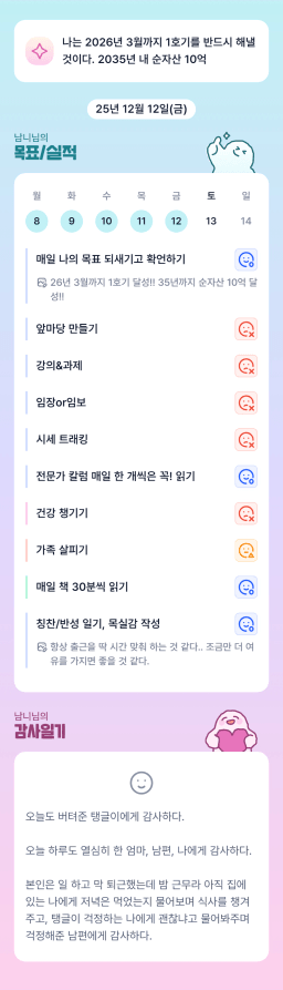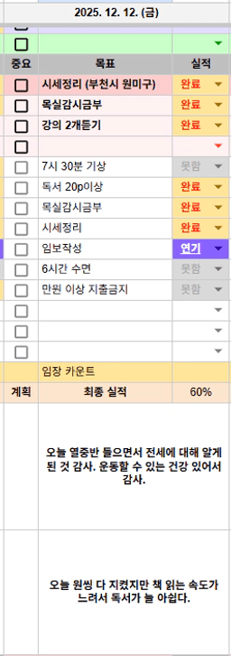 [별찌롱] 12/12 실적, 감사일기, 시간가계부 12/13 목표