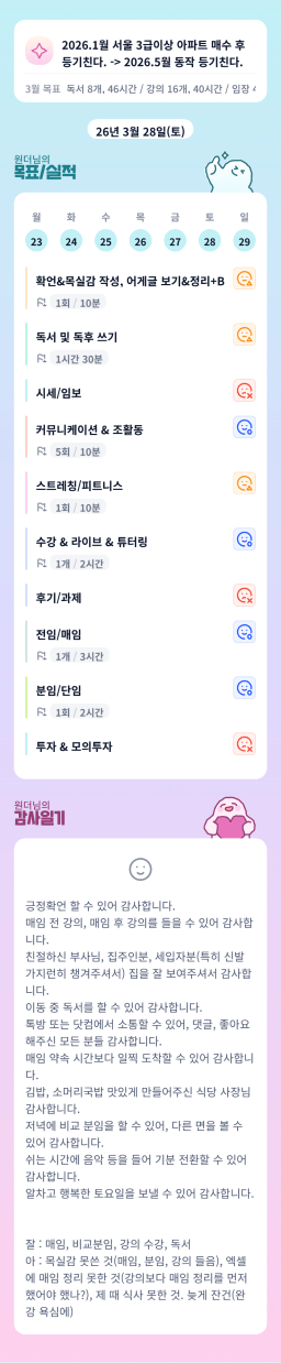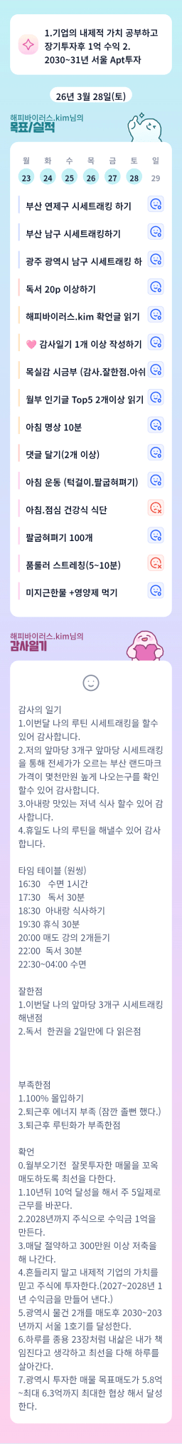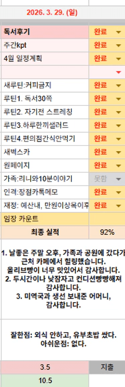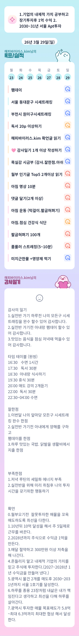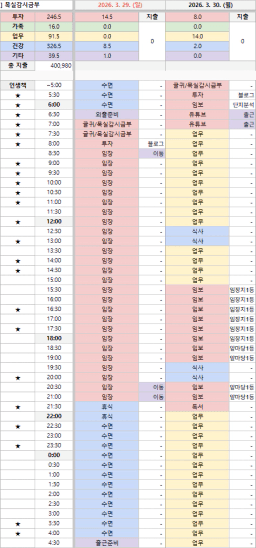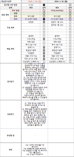 26년 3/29~3/30 목표,실적,감사일기,시간가계부[헤라클래스]