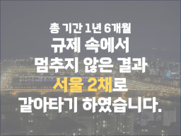 총 기간 1년 6개월, 규제속에서 멈추지 않은 결과 서울 2채로 갈아타기 하였습니다[민갱]