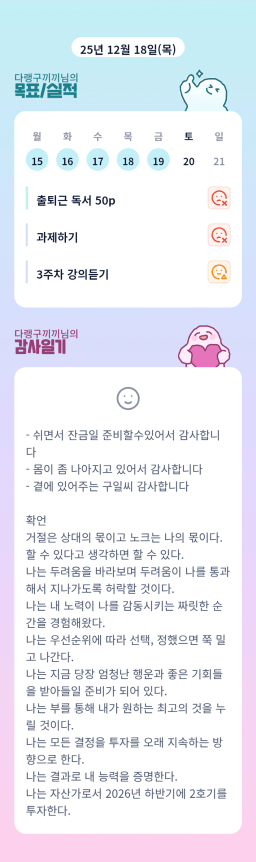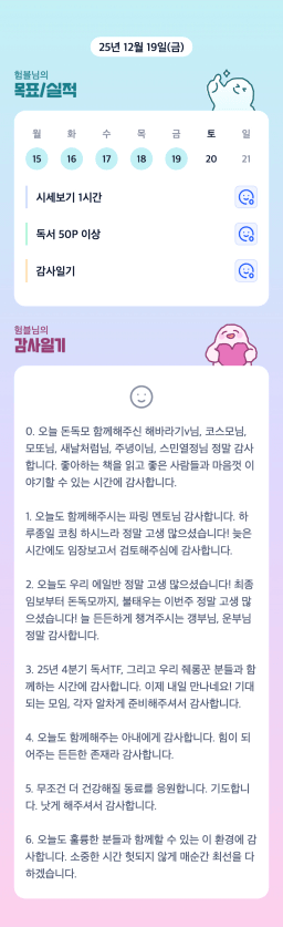 [에이스1반/독서TF 험블] 12월 19일(금) 감사일기