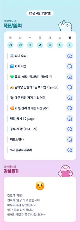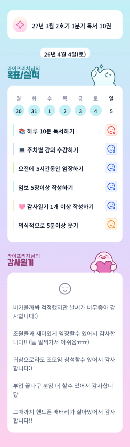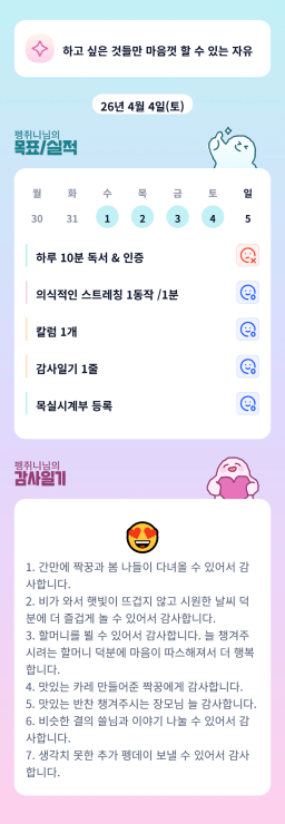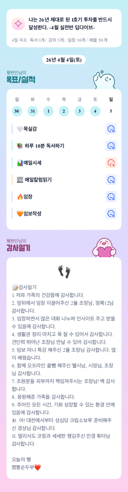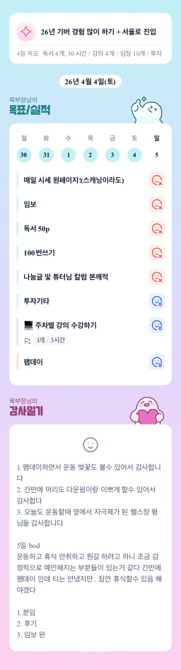 [행편인] 목실감 누적 155일, 연속 35일 진행중_260404
