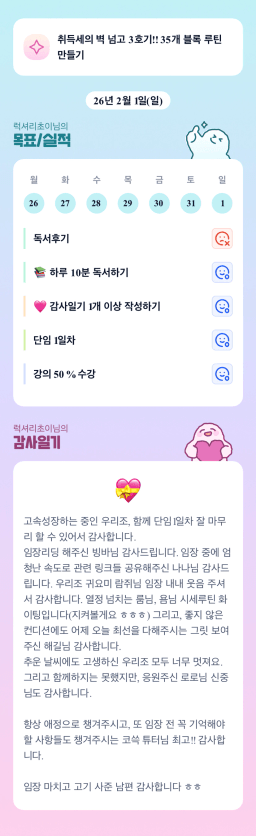 [실전34기 2월은 고속성장 코쓰로 출발=3 / 독서TF3조 럭셔리초이] 목실김 26.02.01