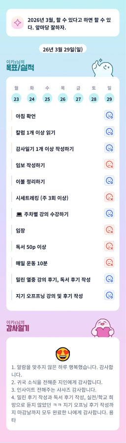 [그미333] 3.29. 목실감 누적 176일, 연속 98일 진행중