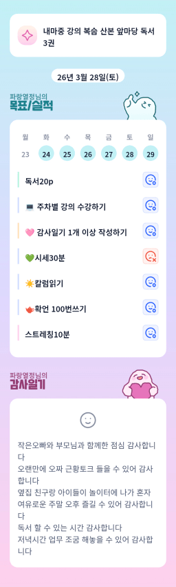 [파랑열정] 목실감 누적 30일, 연속 7일 진행중