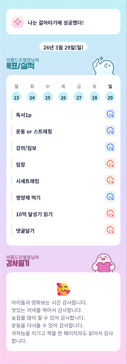 [동화같은행복] 목실감 누적 110일, 연속 110일 진행중