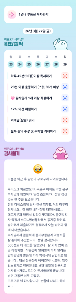 [미운오리새끼] 3숼27일 목실감 누적 111일, 연속 70일 진행중