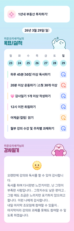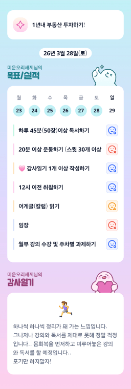 [미운오리새끼] ㅡ월28일 목실감 누적 111일, 연속 70일 진행중