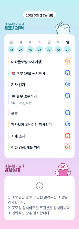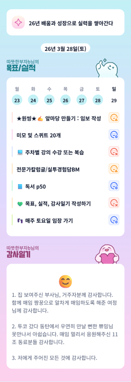 [홍드림] 3/29실적 및 3/30목표, 감사일기