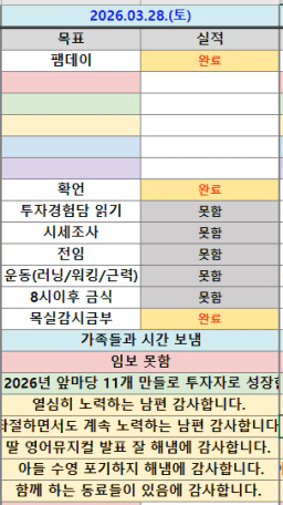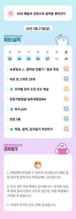[따뜻한부자b] 목실감 누적 202일, 연속 1일 진행중
