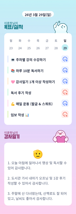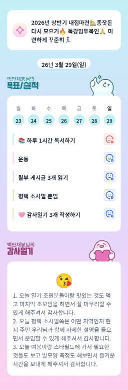 [백만채봉] 3월 29일 목실감 누적 77일, 연속 77일 진행중