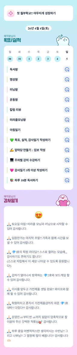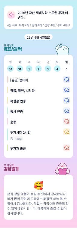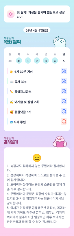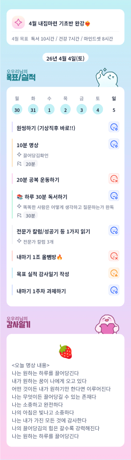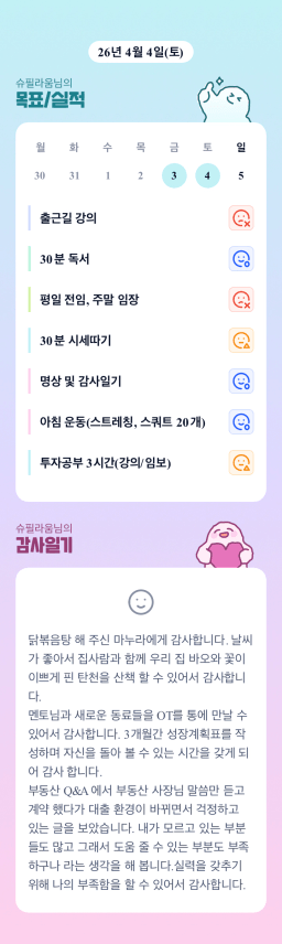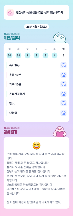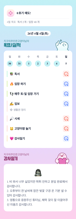 [채니] 목실감 누적 265일, 연속 238일 진행중 26.04.04