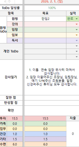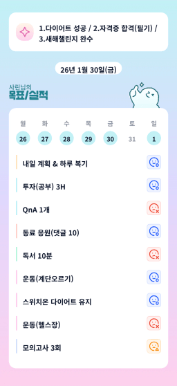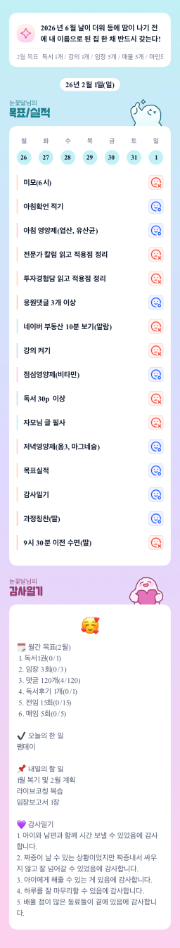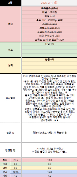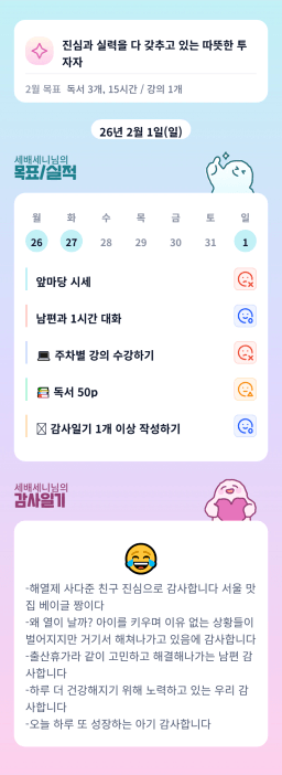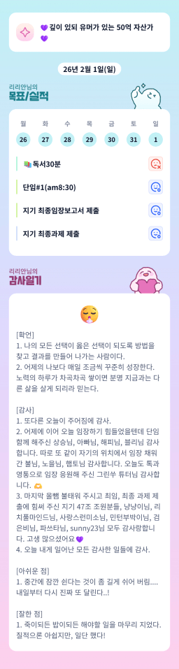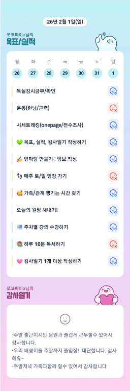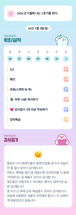 [러버블리v] 26.2.2 목표, 2.1 감사일기 + 칭반