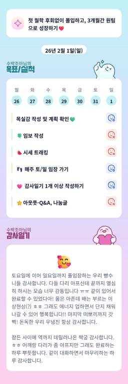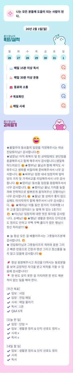 [실전 34기 5조 로레니튜터님과 5를레오 오를레니들 푸르른솔이] 26.02.01 목실감