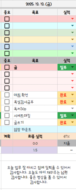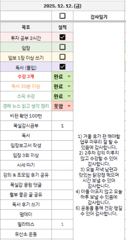 [성장함🧡] (2025.12.12.) DAY315 목표,실적,감사일기,시간가계부