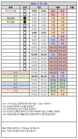 01/30~02.01 목표,실적,감사일기,시간가계부 [김실력]