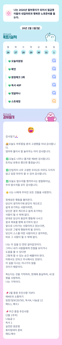 [에이스4반/독서TF 26.1Q 운조] 1/30-2/1 목실감