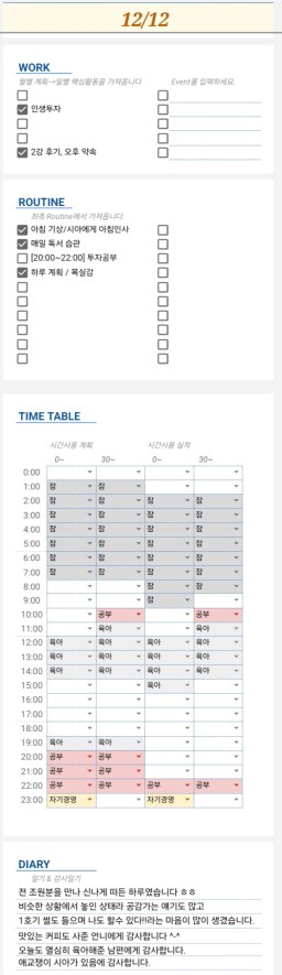 [스테디킴] 12월 12일 목실감, 시간가계부