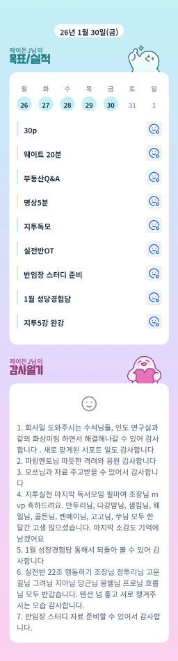 [실전34기 24시간 12개월 꾸준히 나알이 나아가조💙 더나은라이프] 1/30-2/1