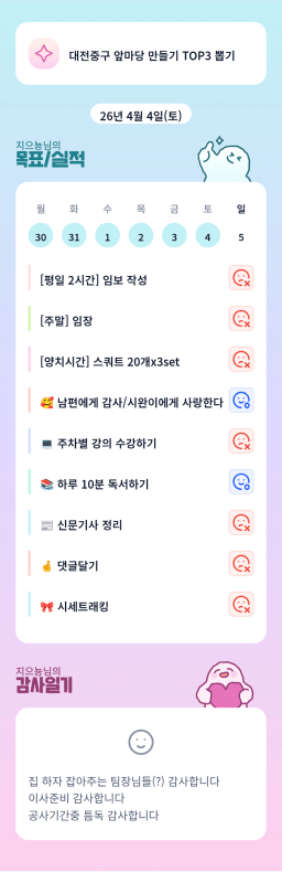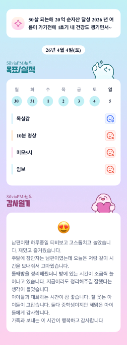 [홈스윗] 4/2-4/3목실감 누적 197일, 연속 98일 진행중