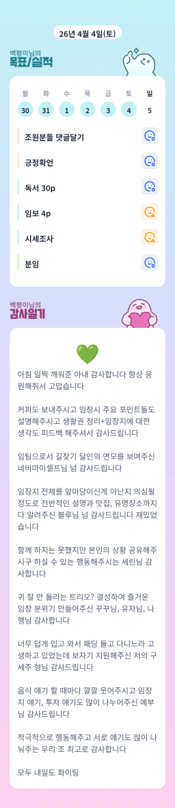 [백평이] 목실감 누적 216일, 연속 185일 진행중