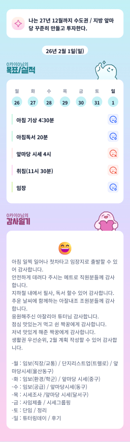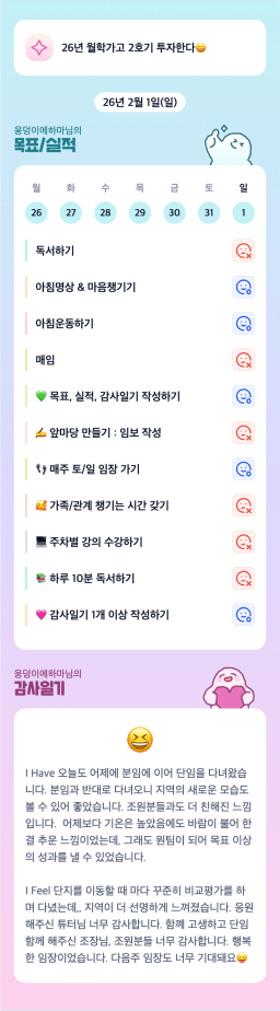 [26.2.1 (일) 빛날히히] 목실감 2일차