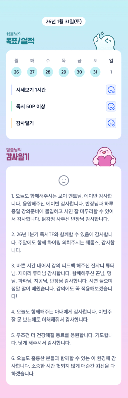 [에이스2반/독서TF 험블] 1월 31일(토) 감사일기
