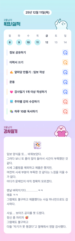 [열중48기 이번달 3시세끼 독서만 불4르조❤️깡총] 12/11 목실감