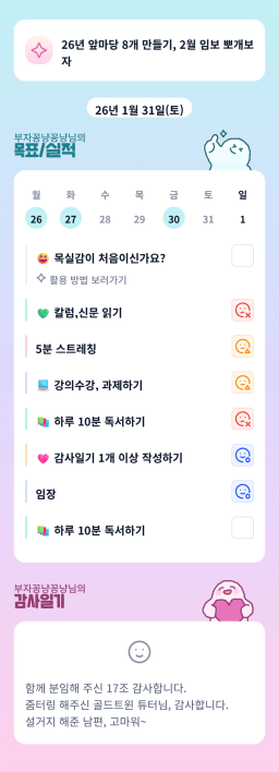 [지투기 난=3 부산을 ㄱ2는다..★ 5늘도 조 더블샷1] 1.26~2.1. 감사일기