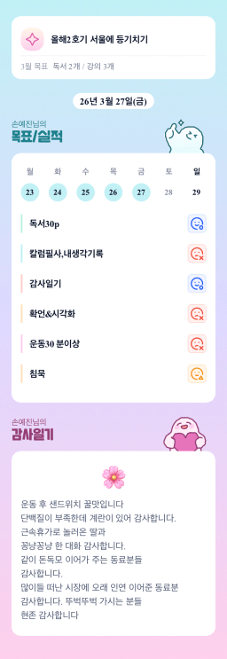 [꿈꾸는욤] 0327-0328 목실감 누적 181일, 연속 181일 진행중