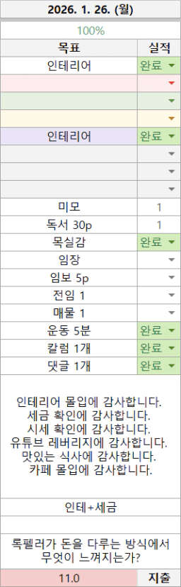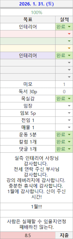 손금쟁이의 26년 01월 목실감 결산