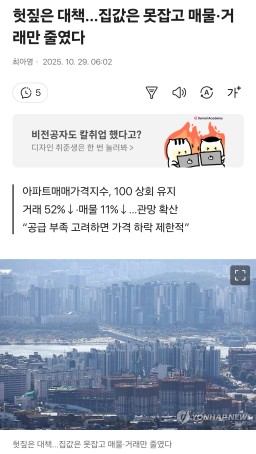 [그린쑤] 경제신문요약(10월) #29_헛짚은 대책...집값은 못잡고 매물·거래만 줄였다(25.10.29)