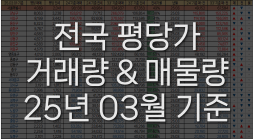 [빙바나나] 전국 시세. 25년 3월 평당가 / 거래량 & 매매,전세 매물량 (25.03.05)