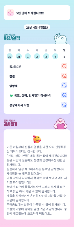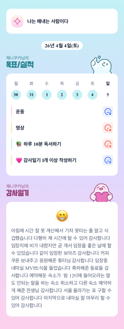 [내일의 나] 목실감 누적 17일, 연속 4일 진행중